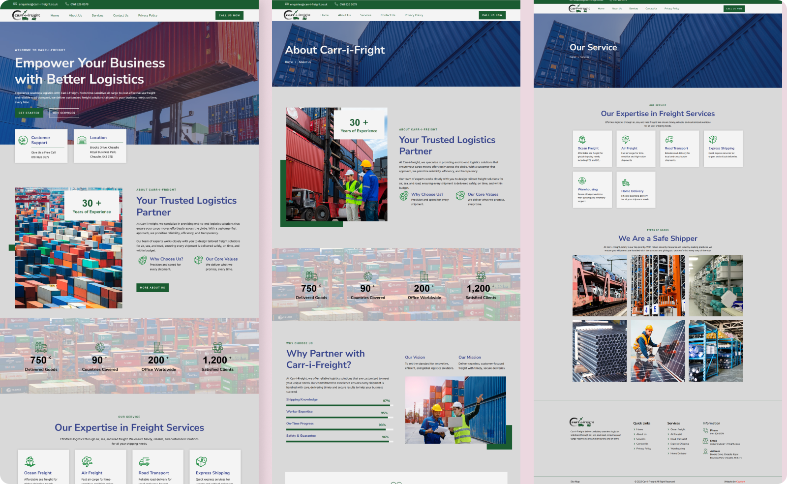 Carr-i-Freight is a global logistics partner led by Garry and Ben, delivering end-to-end freight solutions across air, sea, and road. With operations spanning over 90 countries, the company required a website that reflects its international reach and reliability.